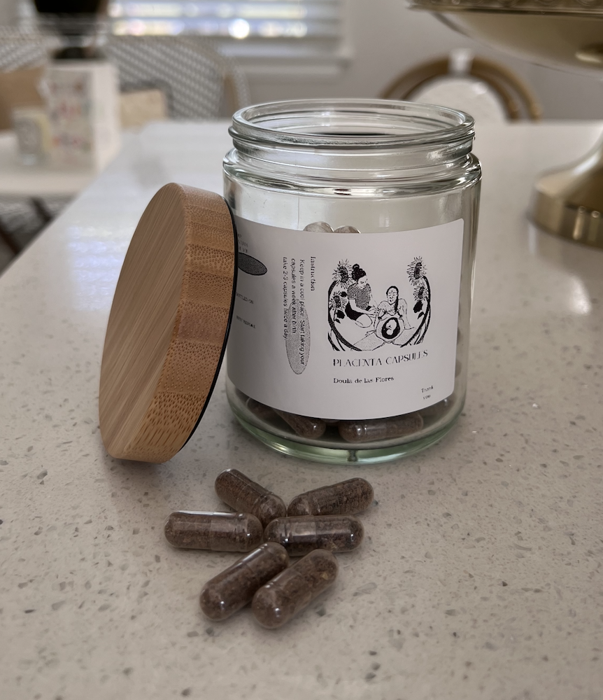 After the placenta is delivered, a lot of women are now having their placenta encapsulated and are taking their placenta post-partum like a supplement. There isn’t a ton of evidence-based trials on the exact benefits of taking your placenta, but almost all other mammals consume their placenta after birth. And it is becoming more common for women to do the same. Many believe that there are so many health benefits to consuming your placenta, and I had decided I would one hundred percent be consuming mine—assuming my placenta was healthy once delivered. Luckily, mine was.